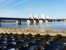 승촌보가 보이는 위치까지 갔다가 마주오는 지인을 만나고서